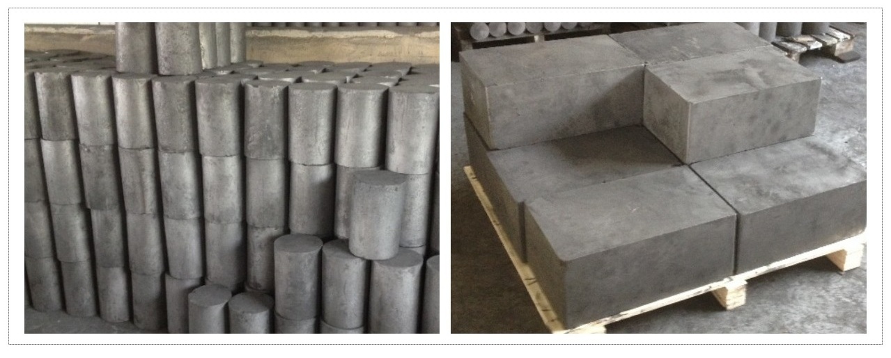 l This graphite block and rod can be used for molds, chutes, sleeves, sheathes, linings, etc. in continuous casting systems for making shaped steel, cast iron, copper, aluminum;